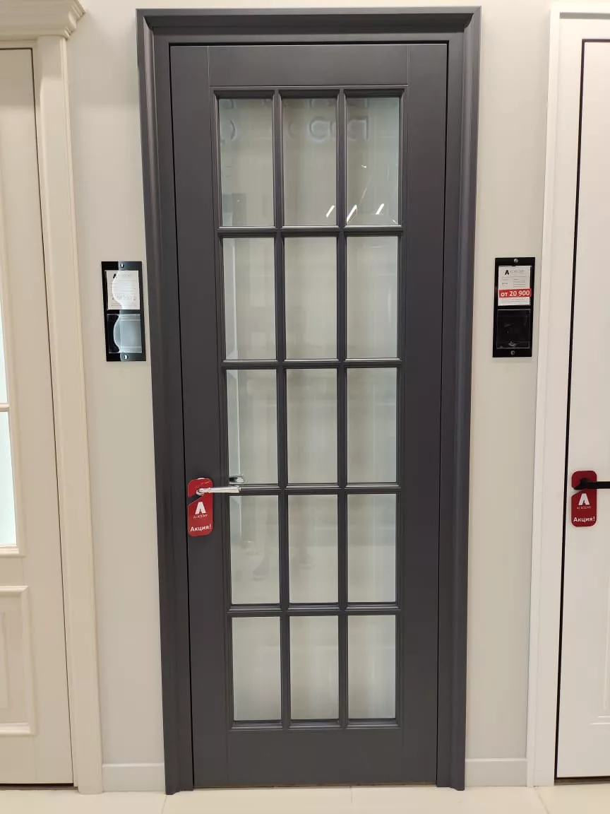 пантографирования, с правильными пропорциями. Два вертикальных руста подчеркивают их красоту. Для полотен под стекло предлагаются различные варианты стекол. Стекла устанавливаются с помощью фигурного штапика. Доступна модель с «английской решеткой». Различные варианты окрашивания делают двери важным элементом в интерьере, а при желании – акцентом.