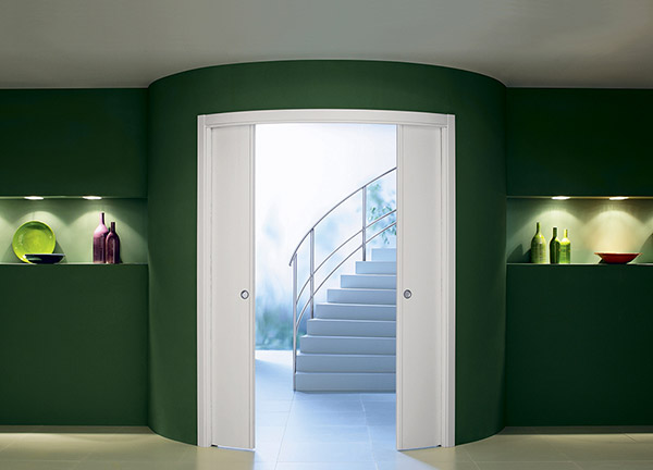Eclipse Circular Estensione позволяет установить пенал для двух радиусных раздвижных дверей внутри радиусной стены. Две створки открываются с эффектом, похожим на эффект театральной сцены, увеличивая окружающее пространство.