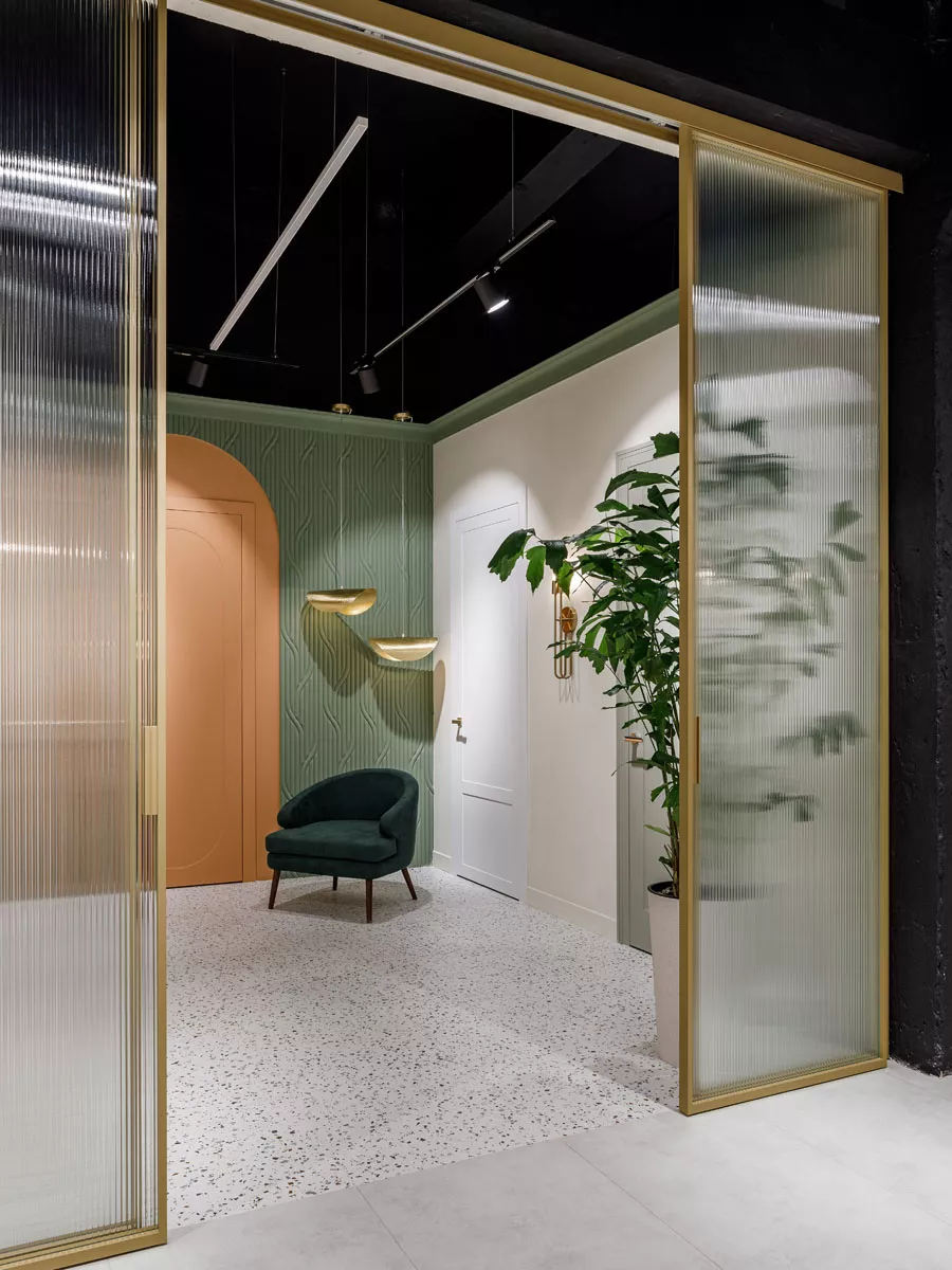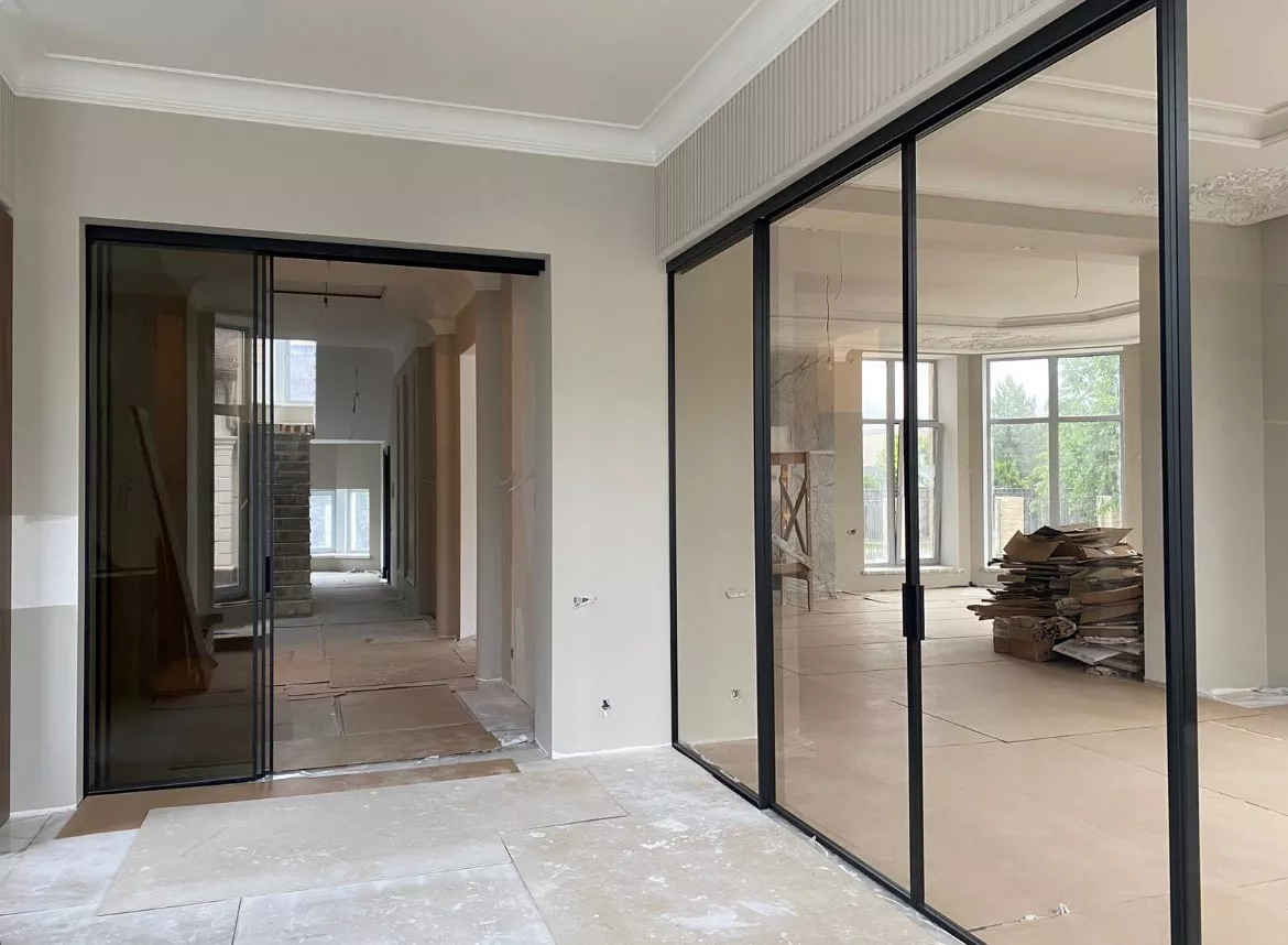 • Под цвет стен: Двери могут сливаться с интерьером, создавая единое пространство (окрашивание двери на заводе по раскладкам NCS или RAL, отделка полотна в идентичный со стеной материал при окрашивании стен, формирование эффекта скрытой двери за счет стеновых панелей в идентичной с полотном фрезеровке).